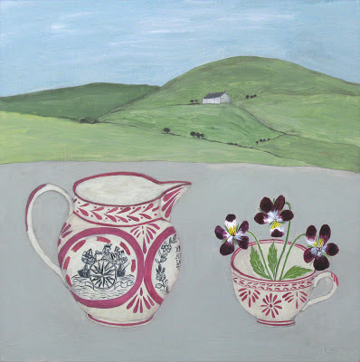 I have done a handful of paintings in the past, inspired by this particular pottery. They usually have a maritime theme and often have a proverb or saying on the jug too. I currently own one jug and it looks like this: